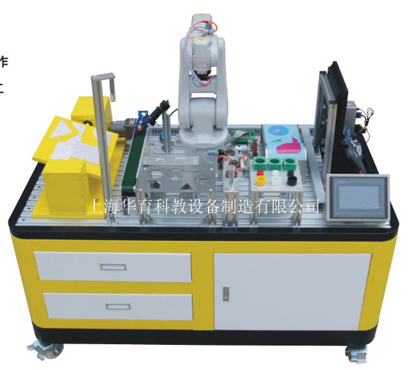 工業機器人視覺系統實訓裝置以工業機器人與機器視覺為核心,將機械、氣動、運動控制、變頻調速、PLC控制技術有機地進行整合,結構模塊化,便于組合,實現對不同物料進行快速的檢測、組裝。為了方便實訓教學,系統進行了專門的設計,可以完成各類機器人單項訓練和綜合性項目訓練,可完成各類機器人單項訓練和綜合性項目訓練。可以進行六軸機器人示教、定位、抓取、裝配、入庫等訓練的機器人實訓平臺。