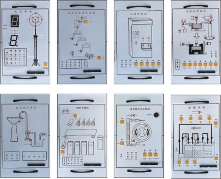 配合 PLC 可編程控制器實驗臺使用而設計的外接演示裝置。它由 LED 發光二極管、大型 LED 數碼管、直流電機、步進電機等執行機構用其他外圍電路模擬實際工業控制過程中的狀態,它形象生動的演示了 PLC 的整個執行過程。通過該裝置,可以鍛煉學生的動手能力,能夠形象生動的執行機構驗證自己編寫程序的正確性,掌握 PLC 的實際應用,增強學生對 PLC 的學習興趣。該裝置在演示屏上位置可任意移動、互換。