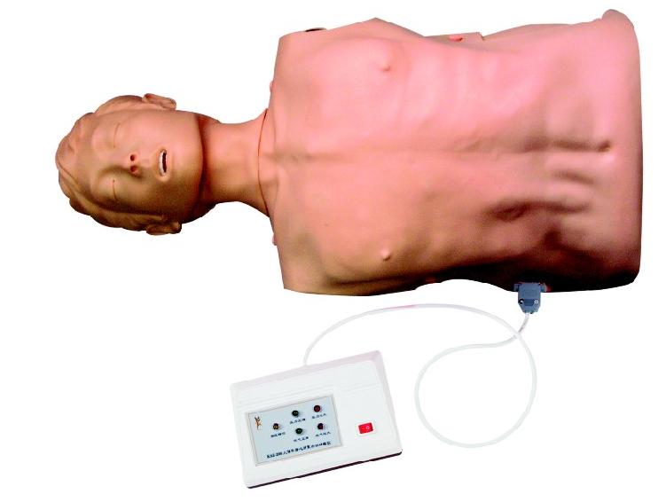 心肺復蘇,國際代稱CPR。在生活中,健康人由于心臟驟停(如觸電、溺水、高空作業事故、交通事故、旅游意外、心臟疾病、心肌梗塞、自然災害、意外事故等所造成的心臟驟停),而必須采取胸外按壓、人工口鼻呼吸、心內注射、氣道放開等搶救過程。使病人追短時間內得救。在搶救過程中胸外按壓位置,按壓強度是否正確,人工呼吸吹入的吹氣量是否足夠等規范動作是否正確,是搶救病人是否成功的關健。因此,在系列搶救過程中,必須要掌握心肺復蘇技術。模擬胸外按壓、人工呼吸、心內注射、頸動脈模擬搏動、瞳孔由一只散大與一只縮小的比較認識,達到掌握操作訓練心肺復蘇術的基本要求。對操作正確與否,有光電信號顯示、數碼顯示等功能,它是訓練搶救人員進行心肺急救技術訓練的要求的模擬機。