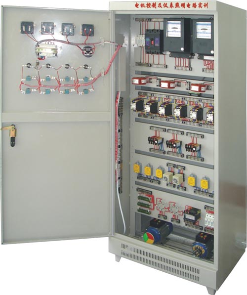 維修電工實訓考核柜主要由實訓柜、網孔板、實訓元器件組成。學生根據實訓線路進行元器件的合理布局,安裝、接線全部由學生自行完成,接近工業現場。能完成機床線路,電機控制線路,照明配電的模擬操作、安裝調試的綜合實訓,訓練學生動手能力和實操技能。實訓項目可自行確定,根據所選的項目選擇相應的元器件。該裝置也可作為電工考工的考核設備。
