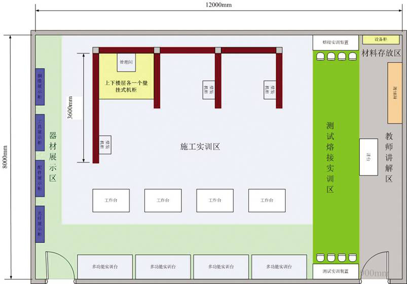 每獨立實訓墻體安裝2個墻面,每個墻面滿足2-3名學生同時實訓,每兩個墻體形成的區(qū)間能滿足4-6人實訓。