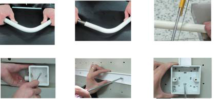 模擬墻正上方開有進管孔直徑20毫米,由橋架引20mmPVC管彎折操作后通過進管孔進入模擬墻,再由上部橫向凹槽穿出。