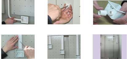 每座實訓單體墻有對稱的兩個墻面,每個墻面布有2道橫向和縱向凹槽,凹槽深度50mm,寬度100mm,下部橫向凹槽距離地面300mm。 鋼面板表面設有60X60毫米的安裝孔用來安裝各種線管、插座、線槽等,實訓過程只需要采用螺絲安裝保證無塵操作。模擬墻外部平整美觀,表面看不見墻體安裝螺絲或鉚釘。